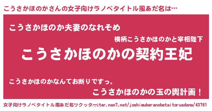 | 胡散臭い通販商品みたいなあだ名 | 『来世でも幸せになれる健康食品…その名も「こうさかほのか」』 |