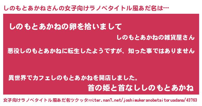 | 胡散臭い通販商品みたいなあだ名 | 『あなたにだけ特別に提供する世界で10本だけ現存している希少なブランデー…その名も「しのもとあかね」』 |