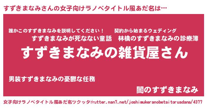 | 男性向けラノベタイトル風あだ名 | 『やはりすずきまなみの青春ラブコメはまちがっている 』 |