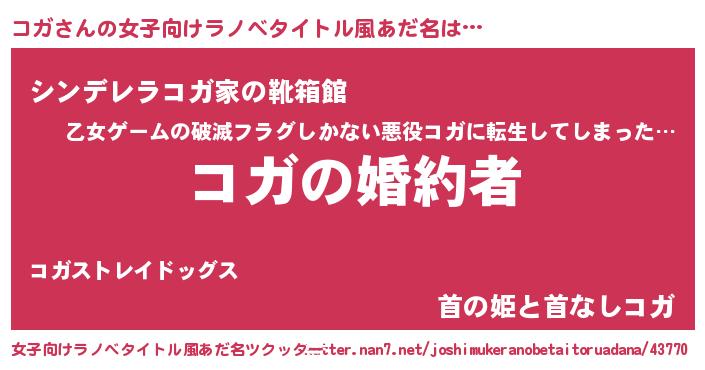 | 胡散臭い通販商品みたいなあだ名 | 『運命の人と巡り会える高級そうな皿…その名も「コガ」』 |
