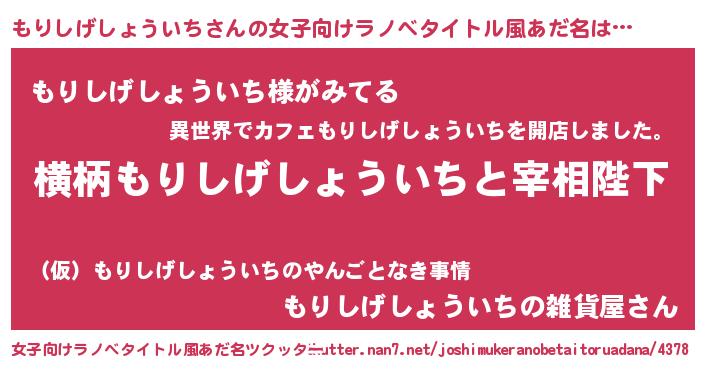 | 男性向けラノベタイトル風あだ名 | 『もりしげしょういちに滅ぼされるだけの簡単なお仕事です』 |
