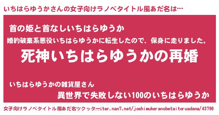 | 男性向けラノベタイトル風あだ名 | 『ノーゲーム・ノーイチハラユウカ』 |