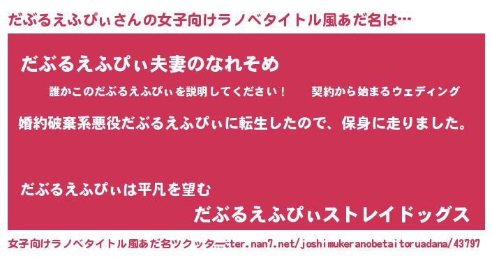 | 男性向けラノベタイトル風あだ名 | 『転生したらだぶるえふぴぃだった件』 |