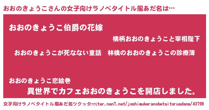 | 意味不明あだ名 | 『住所不定無職おおのきょうこ(39歳)』 |