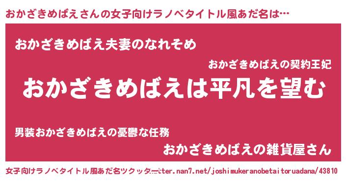 | 胡散臭い通販商品みたいなあだ名 | 『信頼と実績のペンダント…その名も「おかざきめばえ」』 |