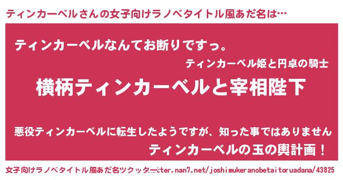 | 男性向けラノベタイトル風あだ名 | 『ティンカーベルに滅ぼされるだけの簡単なお仕事です』 |