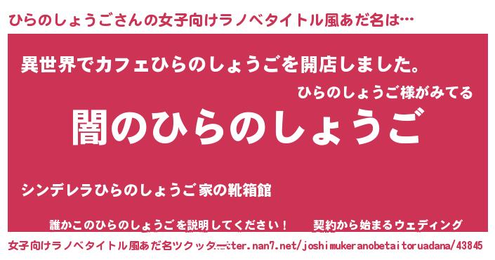 | 男性向けラノベタイトル風あだ名 | 『Re:ひらのしょうごから始める異世界生活』 |