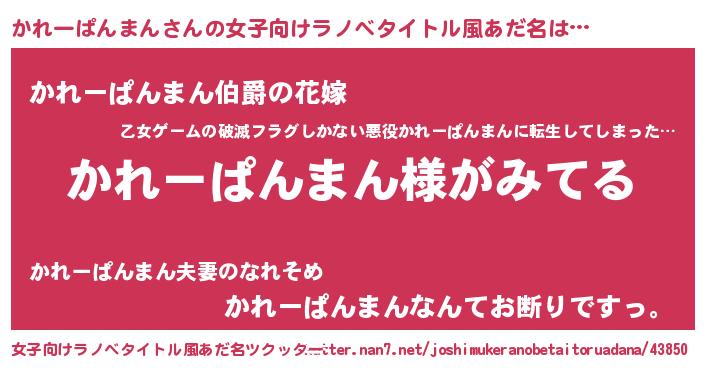 | 男性向けラノベタイトル風あだ名 | 『かれーぱんまんの嫁は女の子じゃないと思った?』 |
