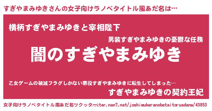 | ヘコむあだ名 | 『すぎやまみゆき(小並感)』『すぎにー』 |