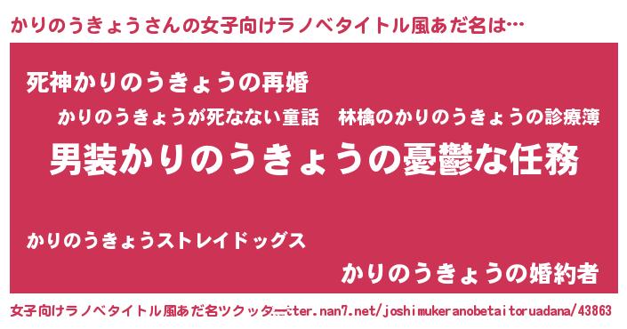 | 男性向けラノベタイトル風あだ名 | 『冴えないかりのうきょうの育てかた』 |
