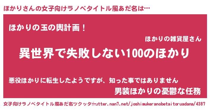 | ヘコむあだ名 | 『ほかり(苦笑)』『レバニラ』 |