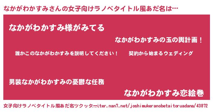 | 胡散臭い通販商品みたいなあだ名 | 『億万長者になれる霊験あらたかなお札…その名も「なかがわかすみ」』 |