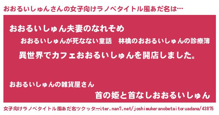 | 男性向けラノベタイトル風あだ名 | 『誰もが恐れるあのおおるいしゅんが、ぼくの専属メイドになるようです。』 |