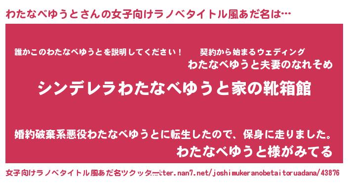 | 胡散臭い通販商品みたいなあだ名 | 『必ず成功するブレスレット…その名も「わたなべゆうと」』 |