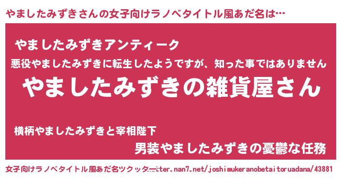 | 男性向けラノベタイトル風あだ名 | 『やはりやましたみずきの青春ラブコメはまちがっている 』 |