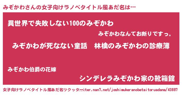 | ヘコむあだ名 | 『みぞかわ(笑)』『酢こんぶ』 |