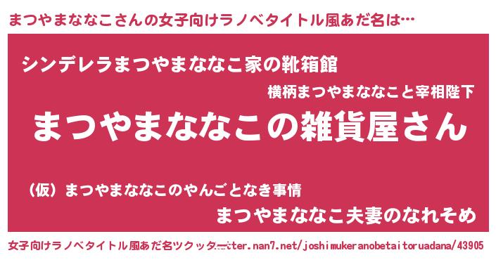 | 男性向けラノベタイトル風あだ名 | 『やはりまつやまななこの青春ラブコメはまちがっている 』 |