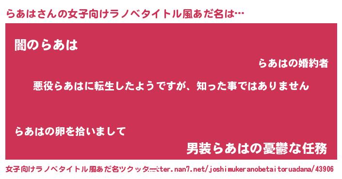 | ヒーロー風カッコイイあだ名 | 『仮面ラアダー』『最強戦士ラアハ』 |
