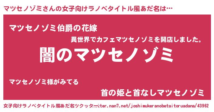| 男性向けラノベタイトル風あだ名 | 『Re:マツセノゾミから始める異世界生活』 |