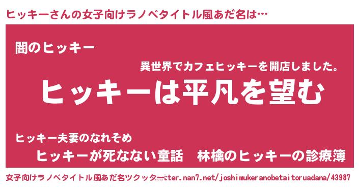 | 胡散臭い通販商品みたいなあだ名 | 『信頼と実績のネックレス…その名も「ヒッキー」』 |