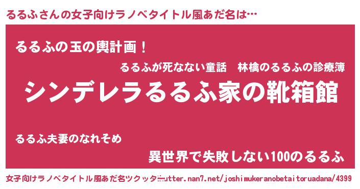 | 意味不明あだ名 | 『なめこ科るるふ属』『永久保存るるふ』 |