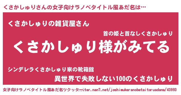 | ヒーロー風カッコイイあだ名 | 『幻影騎士クサ』『ネオクサカシュリ』 |