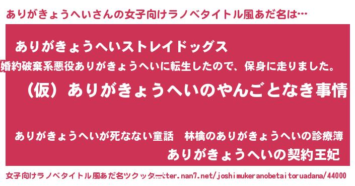| 男性向けラノベタイトル風あだ名 | 『ありがきょうへいの憂鬱』 |