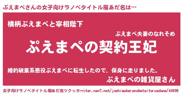 | 男性向けラノベタイトル風あだ名 | 『ぷえまぺという概念が存在しない退屈な世界 』 |