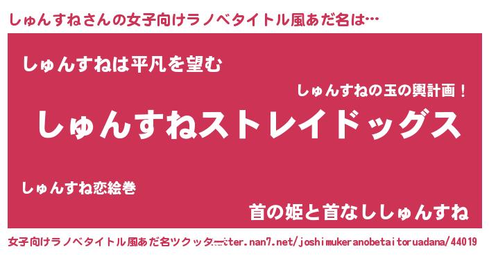 | ヒーロー風カッコイイあだ名 | 『究極戦士シュンスネ』『暗黒騎士シュ』 |