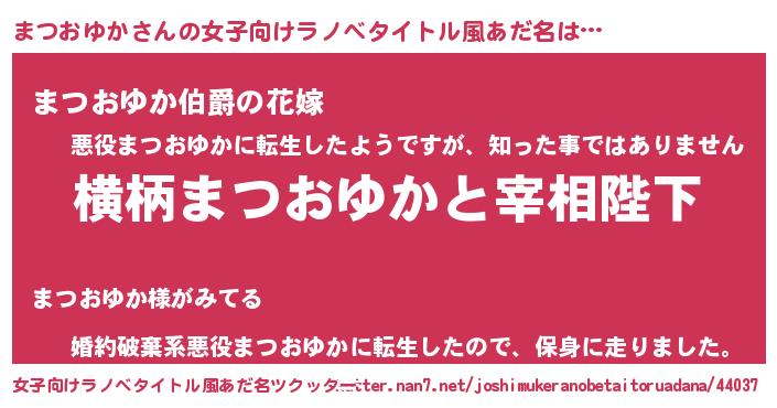 | 胡散臭い通販商品みたいなあだ名 | 『運命の人と巡り会える高級そうな壺…その名も「まつおゆか」』 |