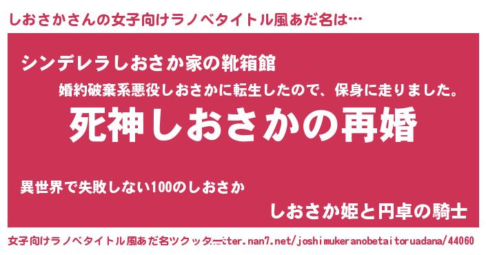 | 男性向けラノベタイトル風あだ名 | 『ノーゲーム・ノーシオサカ』 |
