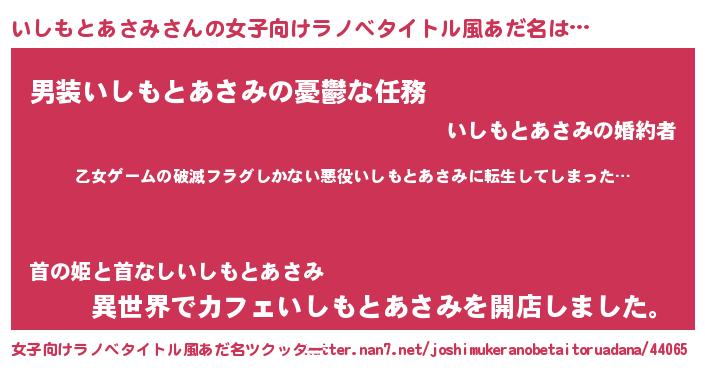 | 男性向けラノベタイトル風あだ名 | 『魔弾の王といしもとあさみ』 |