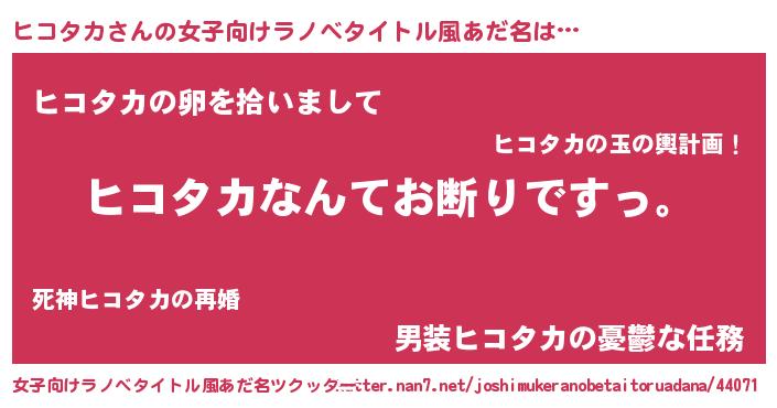 | ヒーロー風カッコイイあだ名 | 『超時空戦士ヒコタカ』『銀牙騎士ヒコ』 |