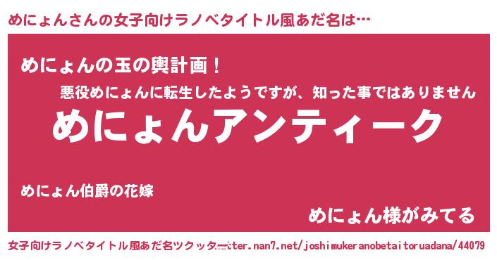 | 男性向けラノベタイトル風あだ名 | 『魔法科高校のめにょん』 |