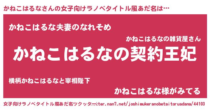 | 男性向けラノベタイトル風あだ名 | 『誰もが恐れるあのかねこはるなが、ぼくの専属メイドになるようです。』 |