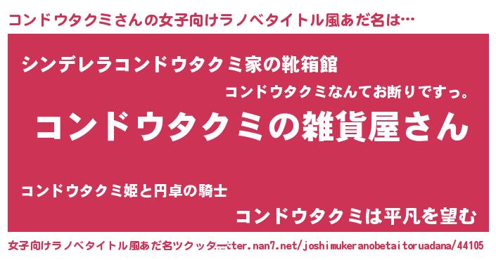 | 男性向けラノベタイトル風あだ名 | 『やはりコンドウタクミの青春ラブコメはまちがっている 』 |