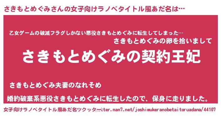 | 胡散臭い通販商品みたいなあだ名 | 『来世でも幸せになれる健康食品…その名も「さきもとめぐみ」』 |