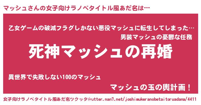 | 男性向けラノベタイトル風あだ名 | 『ノーゲーム・ノーマッシュ』 |
