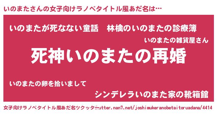 | 男性向けラノベタイトル風あだ名 | 『ノーゲーム・ノーイノマタ』 |