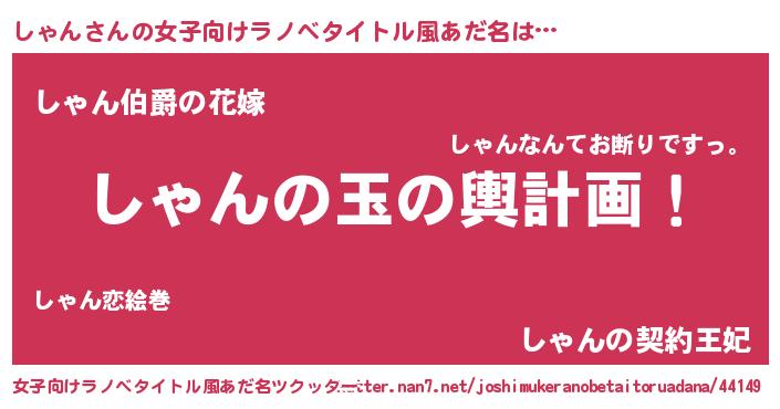 | ヒーロー風カッコイイあだ名 | 『ウルトラしゃんマン』『ネオシャン』 |