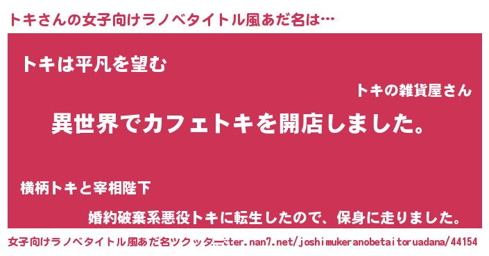 | 男性向けラノベタイトル風あだ名 | 『誰もが恐れるあのトキが、ぼくの専属メイドになるようです。』 |
