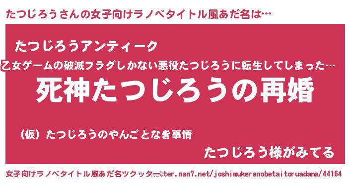 | 男性向けラノベタイトル風あだ名 | 『ノーゲーム・ノータツジロウ』 |