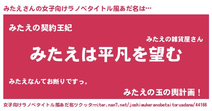| 意味不明あだ名 | 『とにかく怪しいみたえ』『自称みたえ』 |