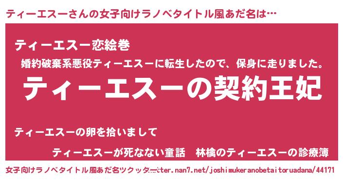 | 胡散臭い通販商品みたいなあだ名 | 『来世でも幸せになれる健康食品…その名も「ティーエスー」』 |