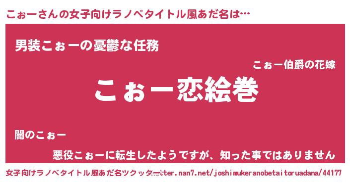 | 男性向けラノベタイトル風あだ名 | 『ノーゲーム・ノーコォー』 |