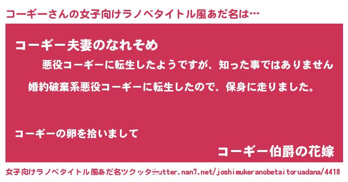 | ヒーロー風カッコイイあだ名 | 『友情の使者コーギー』『仮面コーダー』 |