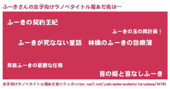 | ヘコむあだ名 | 『ふーき(笑)』『ふーお』『牛乳』 |