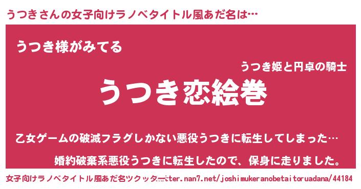 | 男性向けラノベタイトル風あだ名 | 『ノーゲーム・ノーウツキ』 |