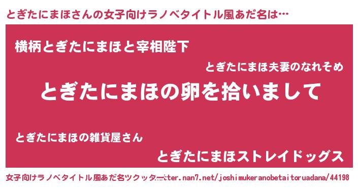 | 男性向けラノベタイトル風あだ名 | 『とぎたにまほの嫁は女の子じゃないと思った?』 |