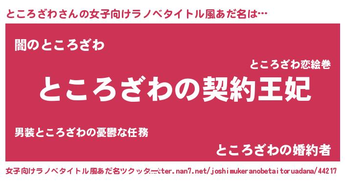 | 男性向けラノベタイトル風あだ名 | 『ところざわという概念が存在しない退屈な世界 』 |